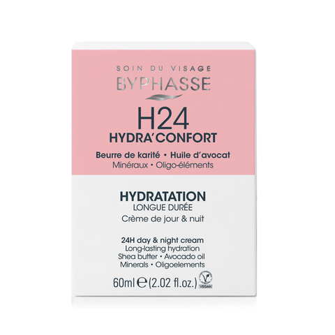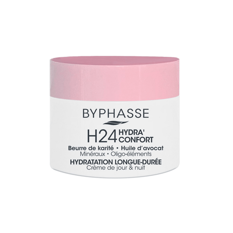La crema de día y de noche Hydra'Confort H24 de Byphasse proporciona una hidratación duradera a las capas superiores de la epidermis. Su textura sedosa deja la piel suave e hidratada durante 24 horas.